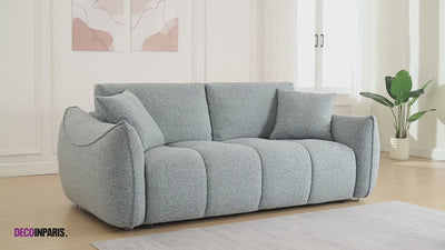 Sofá fijo de 3 plazas EZRA en tejido bouclé verde claro