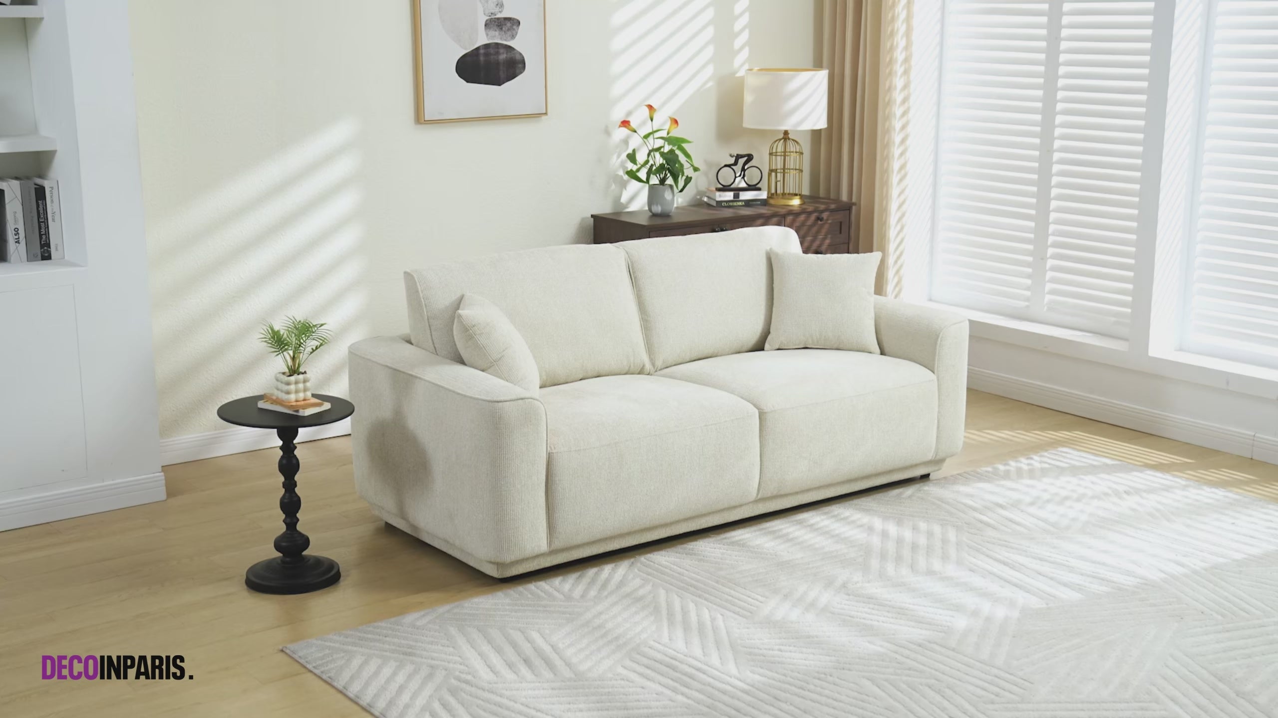 Su tapicería de terciopelo jaspeado, de tacto delicado y textura sutil, aporta un toque cálido y luminoso a su hogar. Su tono beige, discreto y elegante a la vez, se adapta fácilmente a todos los estilos decorativos, desde el contemporáneo hasta el clásico.