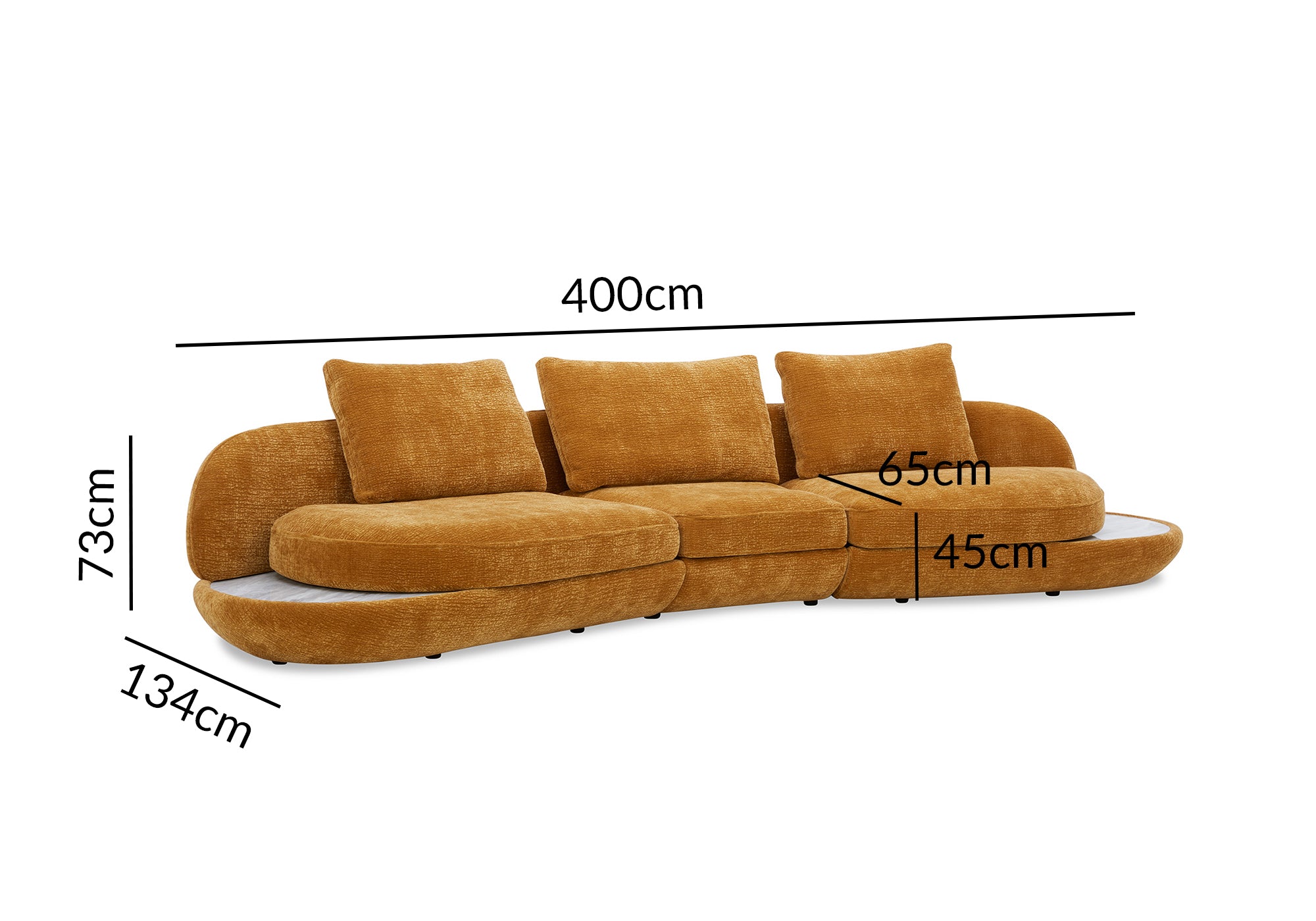 Sofá DARIUS de 4 plazas en terciopelo tejido color mostaza