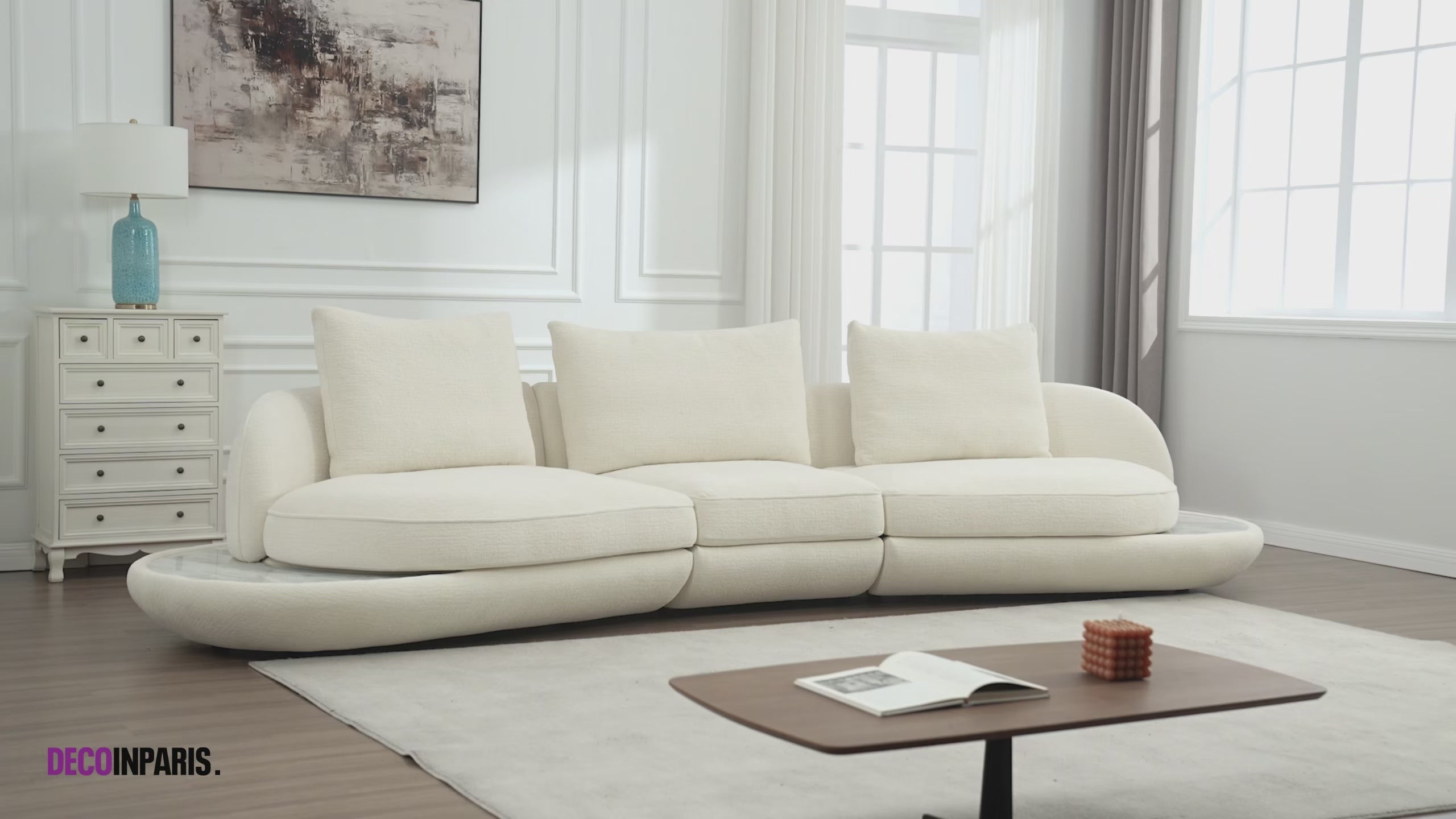Con sus líneas redondeadas y su amplio asiento, el sofá DARIUS ofrece una comodidad excepcional, ideal para relajarse, ya sea recibiendo invitados o disfrutando de un momento de paz. Sus cojines de respaldo, grandes, suaves y envolventes, realzan la sensación de bienestar.