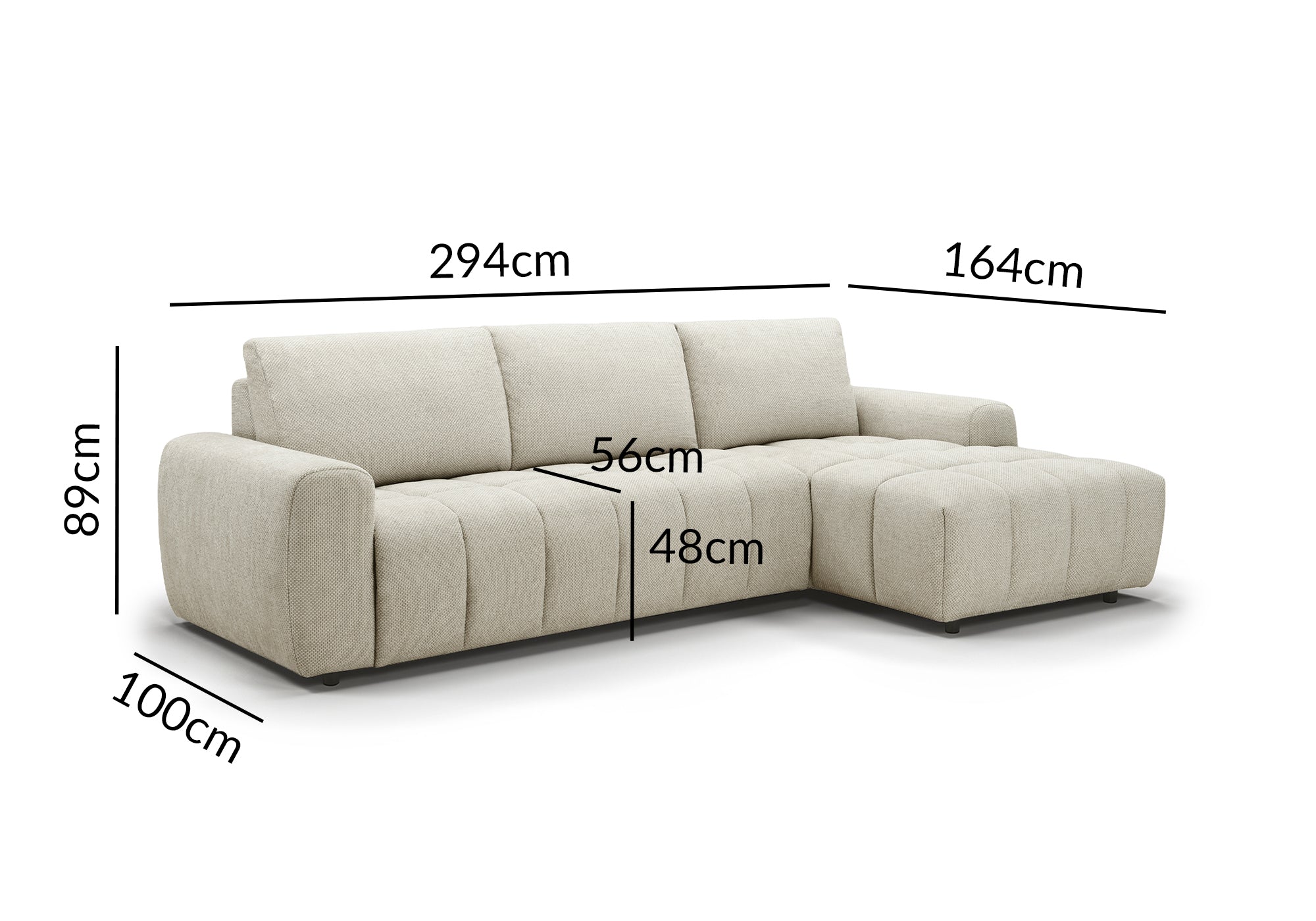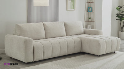 Sofá esquinero convertible con apertura exprés en tejido beige AGATHE – ángulo derecho