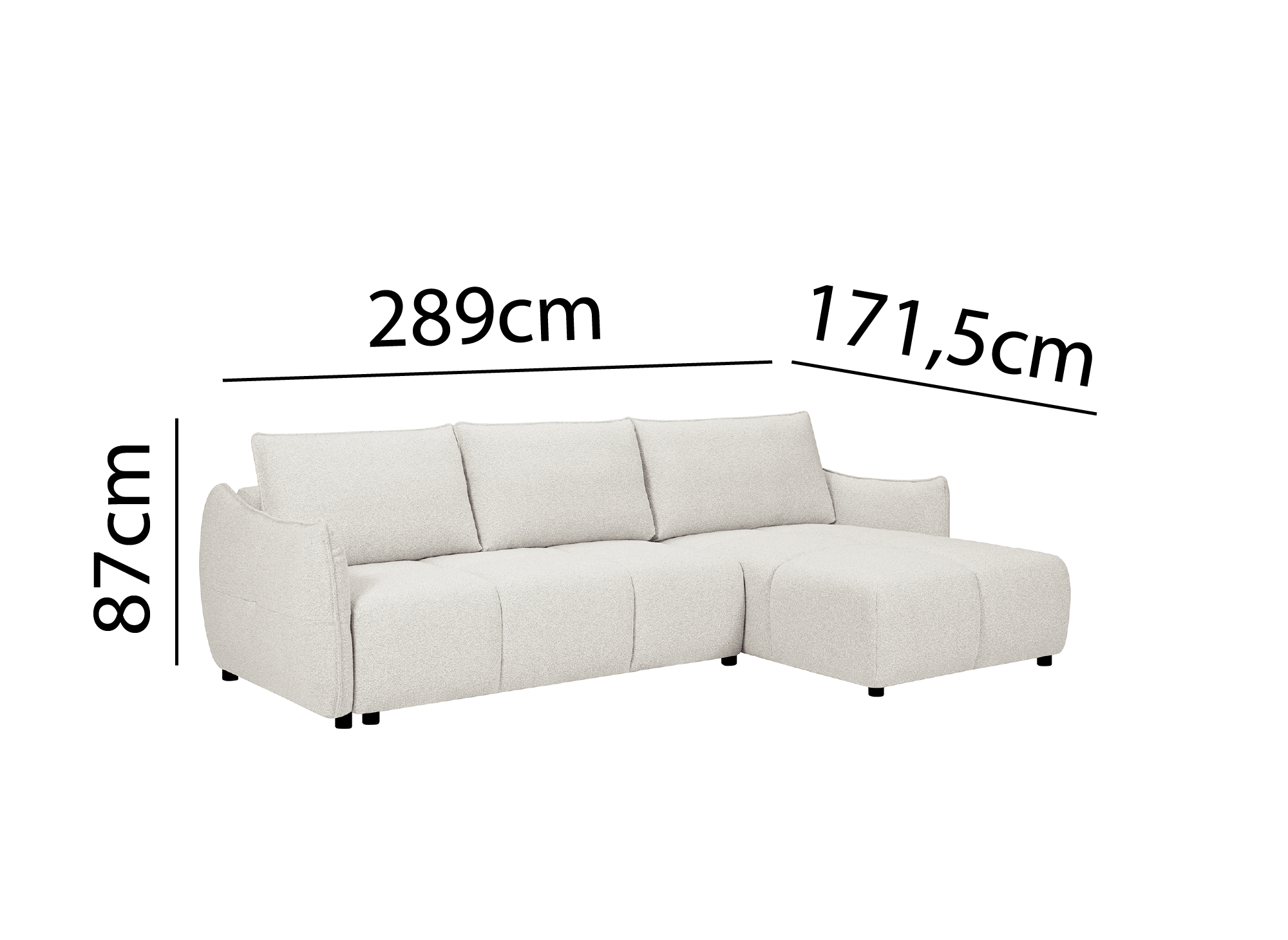 Diseñada para tu comodidad, cuenta con un asiento generosamente acolchado y amplios respaldos mullidos, perfectos para relajarte a diario. Su chaise longue reversible te permite adaptarla a tu espacio, a la izquierda o a la derecha, para una distribución personalizada.