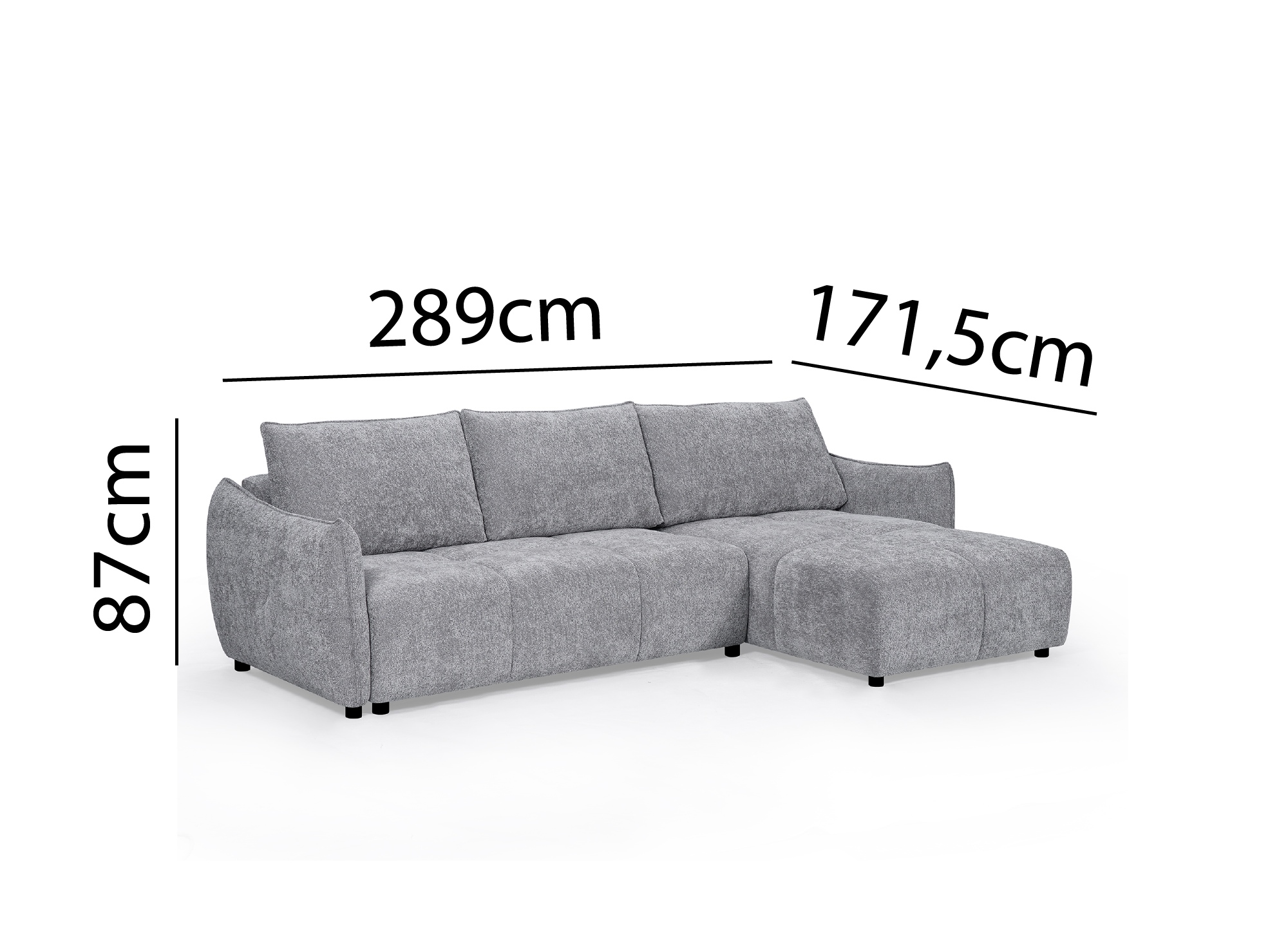 Diseñada para tu comodidad, cuenta con un asiento generosamente acolchado y amplios respaldos mullidos, perfectos para relajarte a diario. Su chaise longue reversible te permite adaptarla a tu espacio, a la izquierda o a la derecha, para una distribución personalizada.
