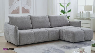 Aporta comodidad y practicidad a tu hogar con nuestro sofá esquinero convertible y reversible MYSA en terciopelo jaspeado. Su diseño moderno y elegante se integra fácilmente en todos los estilos de decoración, desde el más contemporáneo hasta el más clásico.