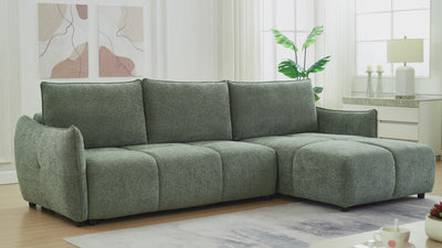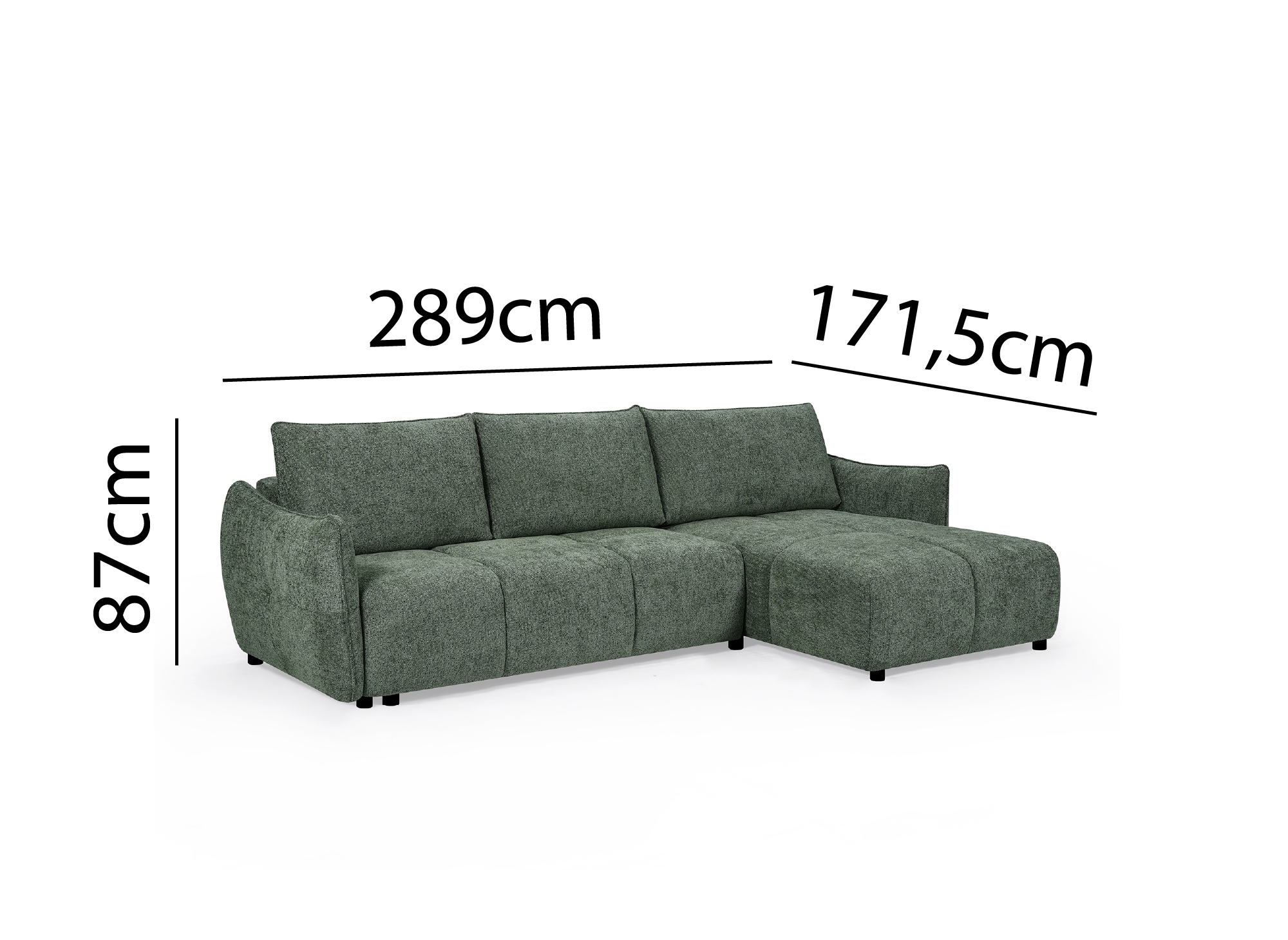 Diseñada para tu comodidad, cuenta con un asiento generosamente acolchado y amplios respaldos mullidos, perfectos para relajarte a diario. Su chaise longue reversible te permite adaptarla a tu espacio, a la izquierda o a la derecha, para una distribución personalizada.