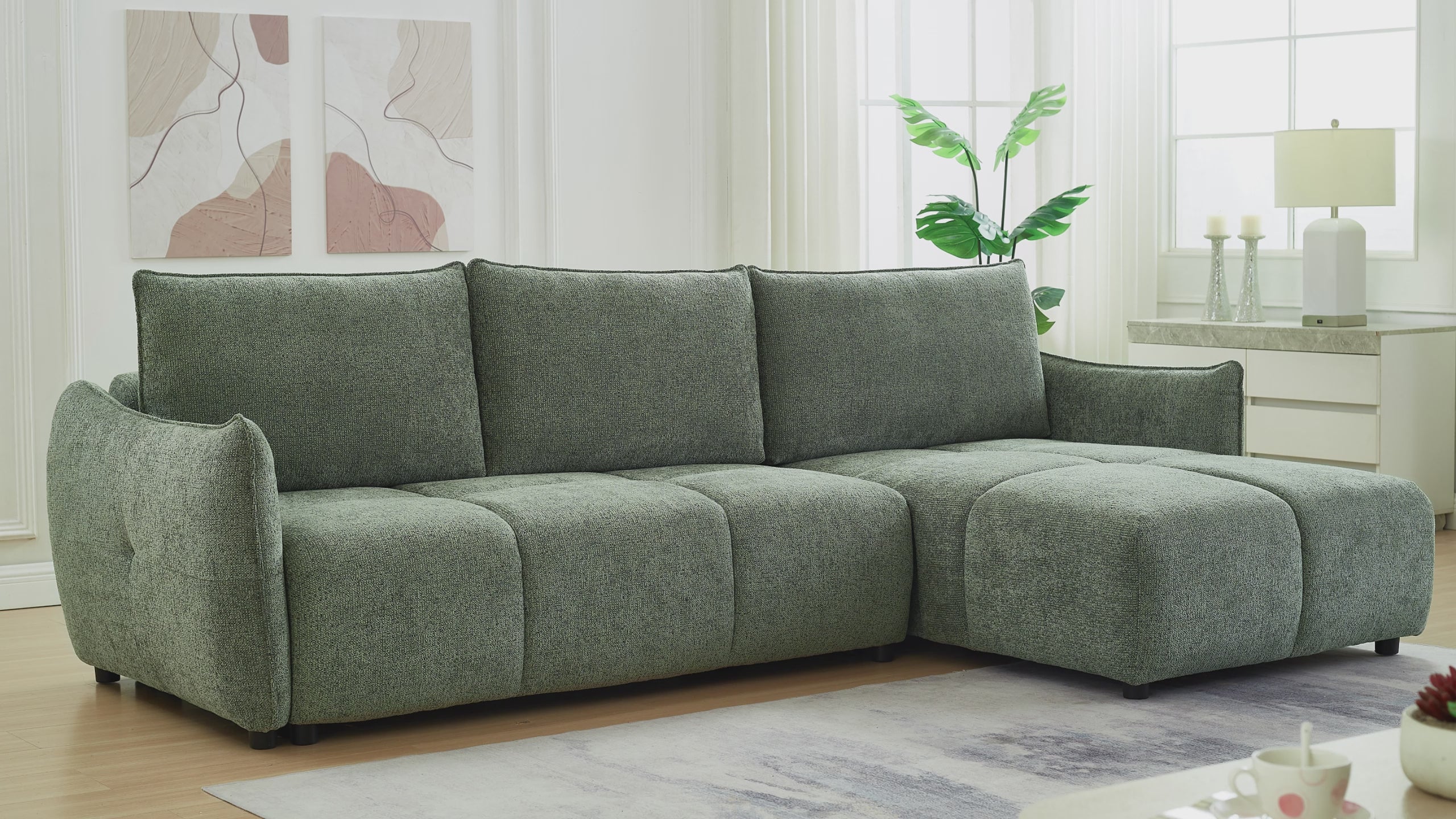 Sofá esquinero convertible y reversible MYSA en terciopelo jaspeado verde oliva