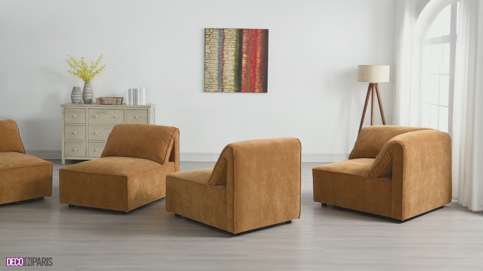 Cómodo y elegante, el sofá esquinero HARINA en terciopelo mostaza se integra a la perfección con cualquier decoración gracias a su suave y acogedor tapizado. Sus líneas puras y su meticuloso acabado lo convierten en la opción ideal para crear un espacio elegante y acogedor. Sus cojines generosamente acolchados brindan una sujeción óptima para momentos de absoluta relajación.