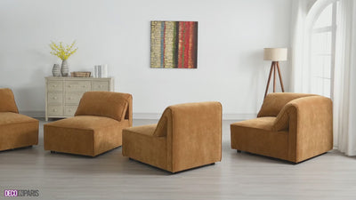 Sofá esquinero modular HARINA en terciopelo mostaza