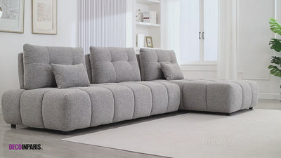 Sofá esquinero reversible ALANA en terciopelo gris texturizado