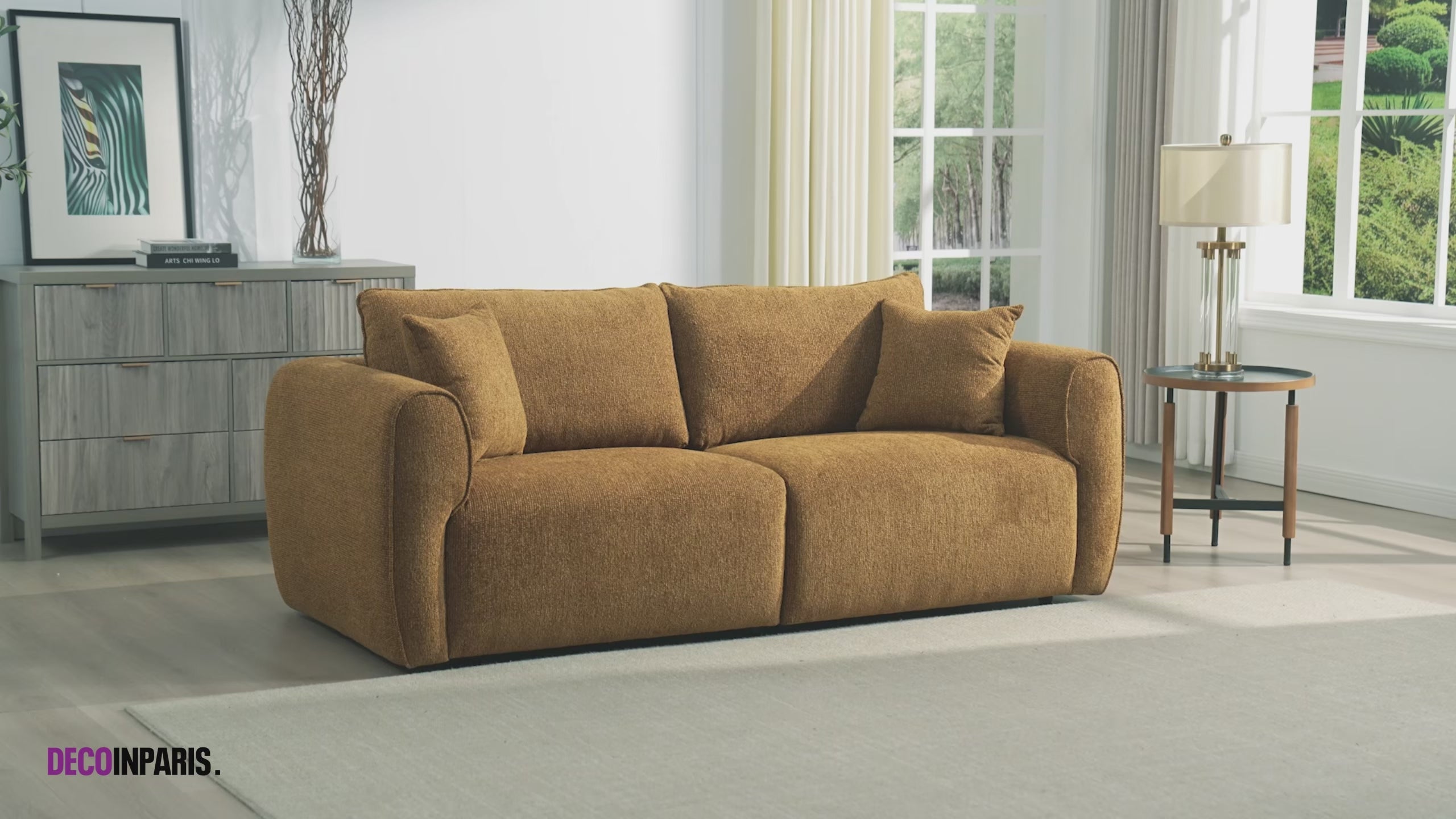 Incluye dos cojines a juego, ofreciendo mayor comodidad y un toque armonioso al conjunto. Perfecto para compartir momentos en familia, recibir invitados o simplemente relajarse tras un largo día, el sofá de 3 plazas NALYA combina una elegancia discreta con la comodidad del día a día.