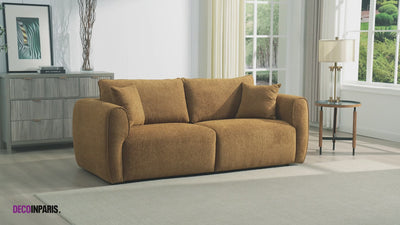 Sofá NALYA de 3 plazas en terciopelo texturizado color mostaza