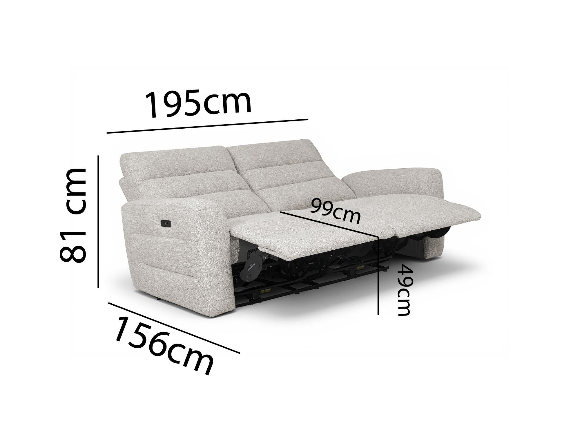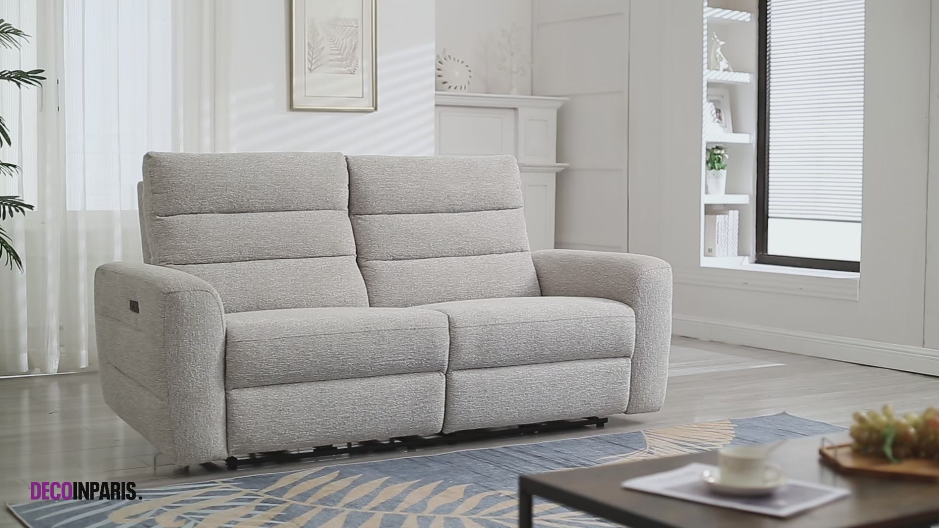 Sofá reclinable eléctrico de 3 plazas DAVY en tejido bouclé beige