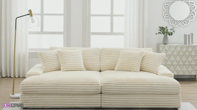 Sofá chaise longue recto de 2 plazas DAHO en tejido acanalado beige suave