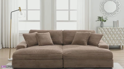 Descubre el sofá chaise longue DAHO de 2 plazas en suave tejido acanalado marrón topo , una solución ideal para espacios pequeños.