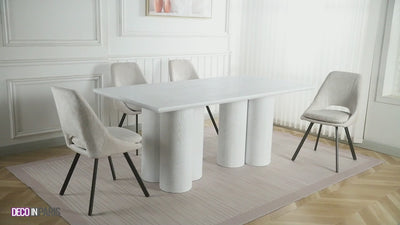 Diseñada para albergar hasta 6 personas, la mesa ROSALIA destaca por sus patas redondeadas de forma orgánica. Este diseño combina originalidad y estabilidad, aportando una estética única a tu hogar.