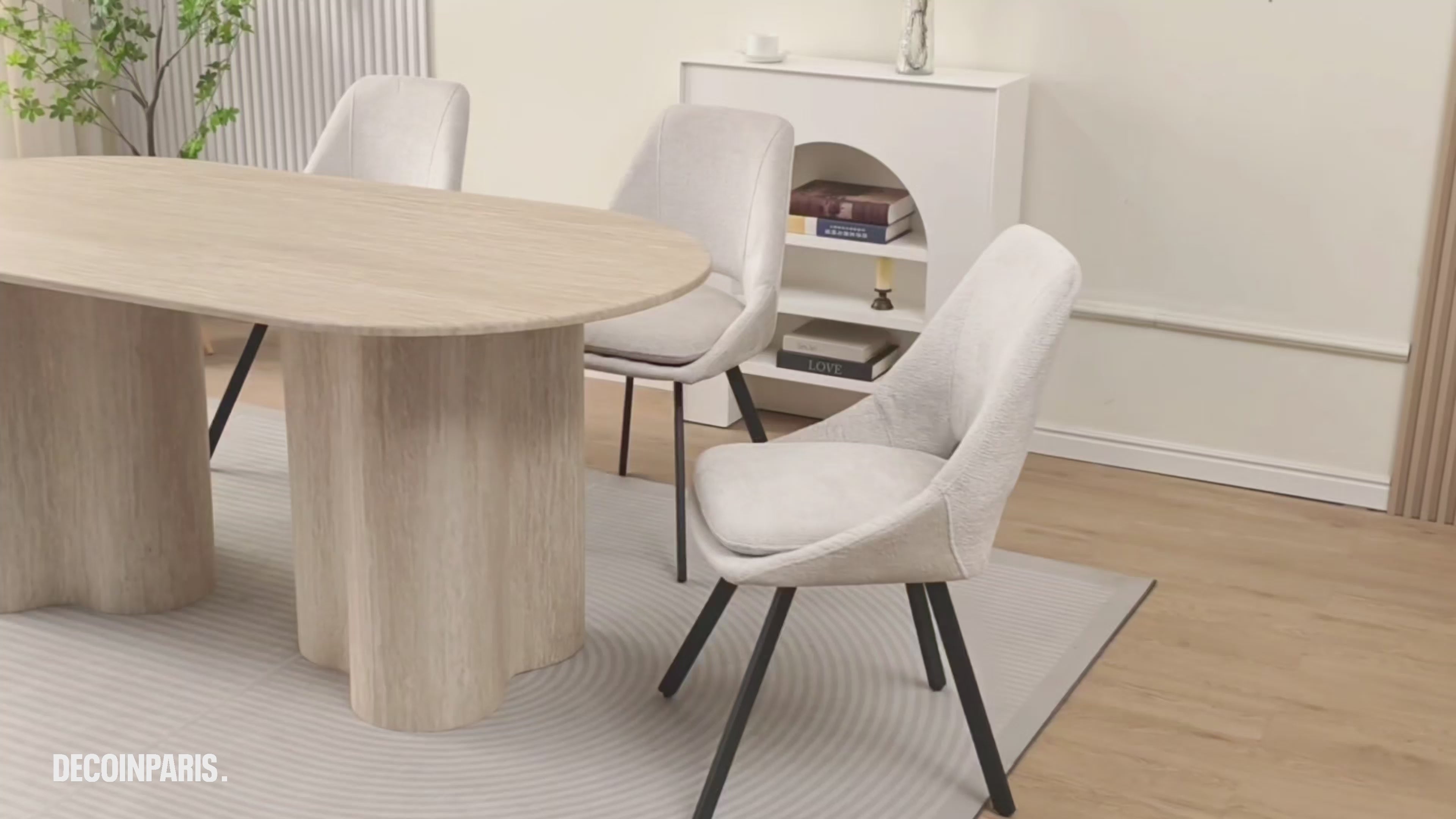 Combina la mesa VANINA con sillas de tela bouclé de color claro para acentuar su carácter y crear un espacio de comedor agradable y elegante.